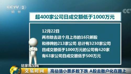 上周五的A股交易數據显示:12月22日,這兩市去除這個月上市的16隻新股和停牌的213家公司,總計有3230家公司,日成交額低於1000萬元的公司,有420家,其中有63家公司的成交額,甚至低於了500萬元,成交非常低迷,可以說已經被市場邊緣化。