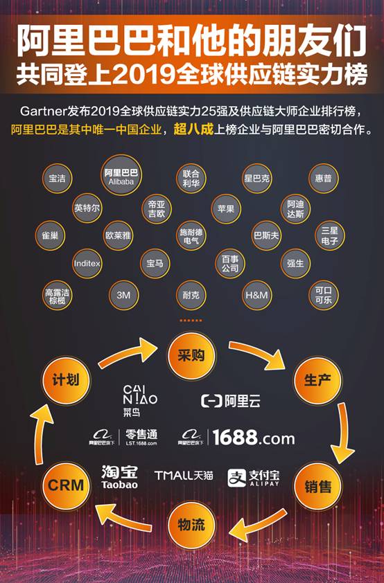 值得注意的是,上榜企業超八成與阿里巴巴合作密切,如寶潔、聯合利華、雀巢、星巴克、歐萊雅等。它們年營收均在百億美元以上,商品企劃、採購、生產、銷售及客戶管理網絡遍布全球。這意味着阿里巴巴在供應鏈領域的領導力,來源於幫助企業建設数字化供應鏈、提升營運效率的能力。