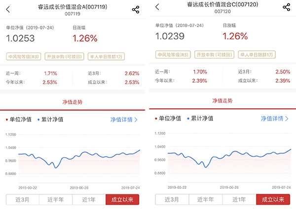 睿遠成長價值混合基金A/C份額凈值表現