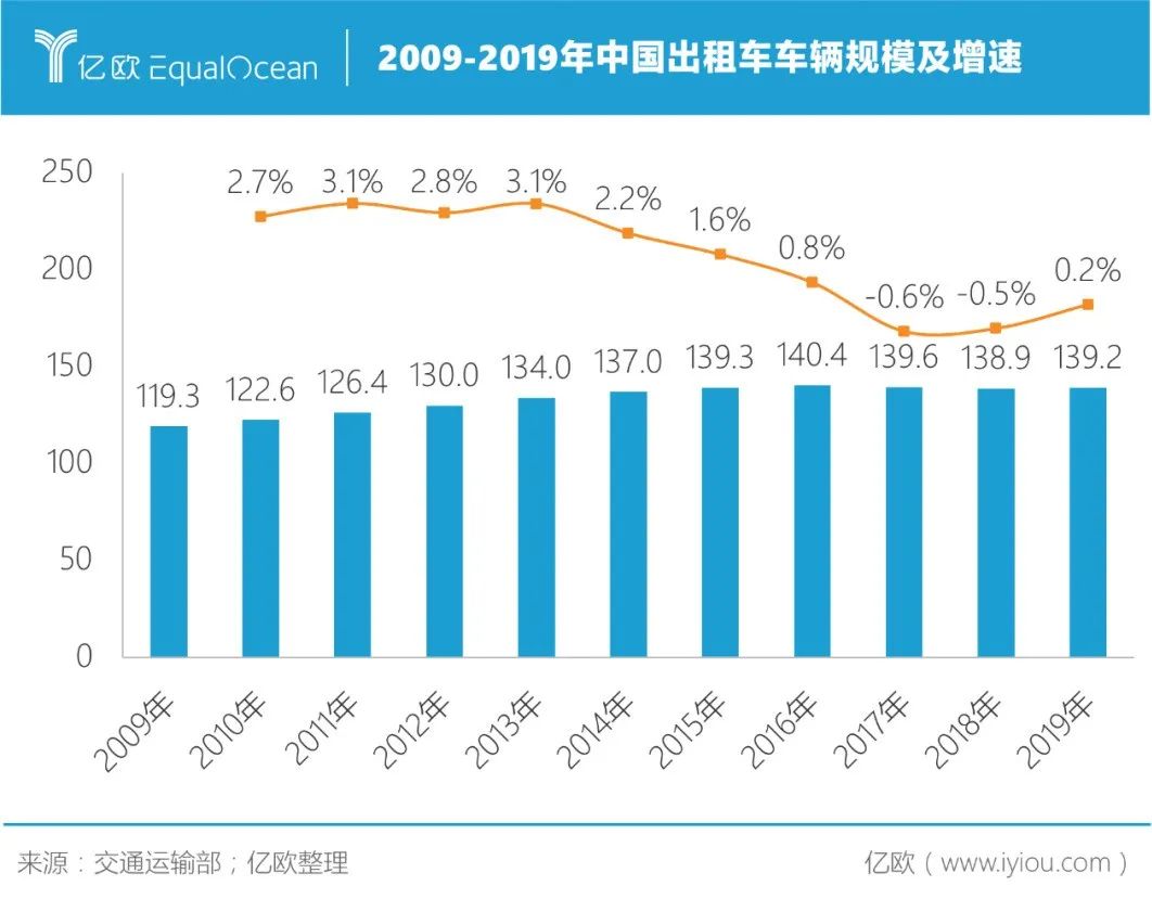 交通運輸部數據显示,2009-2013年,中國出租車車輛規模增速在3%左右,2013年後增速逐年下降,2017年開始不增反降。從保有量來看,我國出租車車輛從2009年不到120萬輛的規模逐年增長,在2016年達到140.4萬輛后開始下跌。