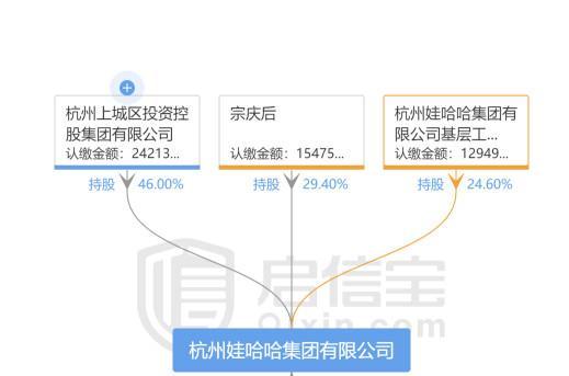 而在國資成分這邊,杭州上城區投資控股集團有限公司持有杭州娃哈哈46%——一個雖然不控股,但通過一個小型資本運作便可喧賓奪主的持股比例。在杭州上城區投資控股集團有限公司背後,是杭州上城區國有資產委員會100%持股。