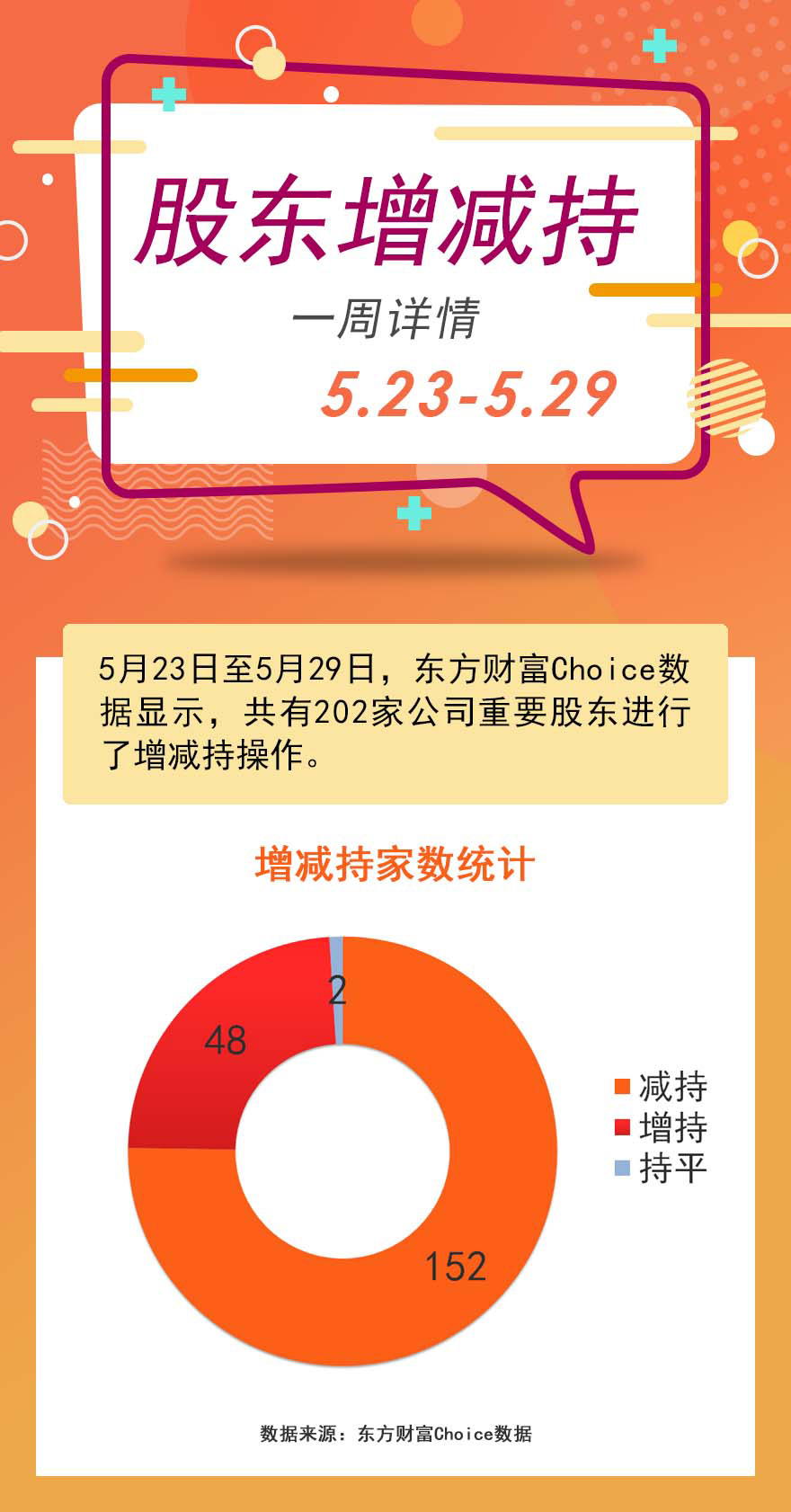 5月23日至5月29日,東方財富Choice數據显示,共有202家公司重要股東進行了增減持操作,其中48股獲重要股東增持。對此,您有什麼看法呢?
