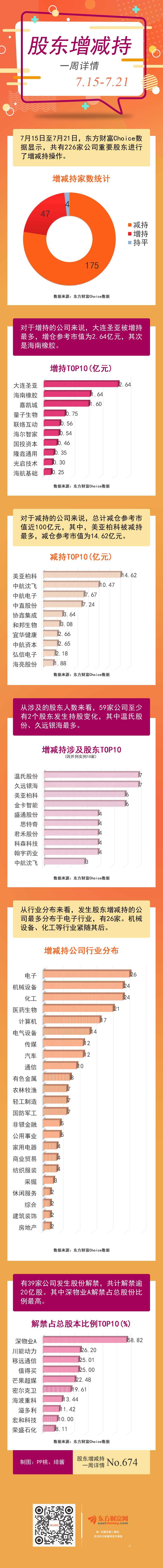 7月15日至7月21日,東方財富Choice數據显示,共有226家公司重要股東進行了增減持操作。對此,您有什麼看法呢?