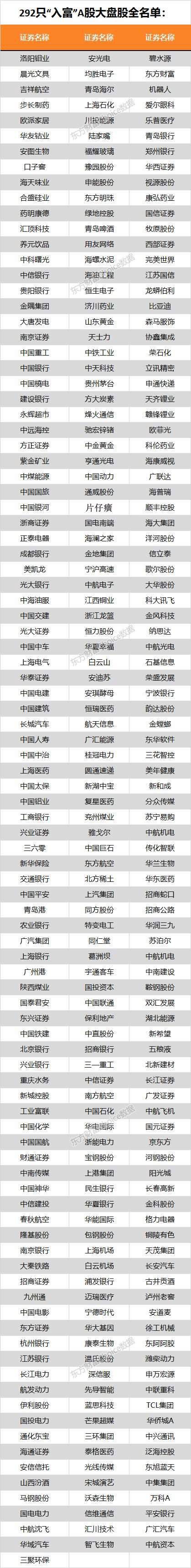 A股“入富”具體名單如下: