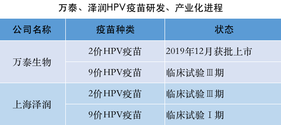 同樣都是研發炙手可熱的HPV疫苗,雖然萬泰生物的二價HPV疫苗先行一步於去年底獲批上市,但澤潤的二價疫苗也已經到了臨床三期,距離獲批就差臨門一腳,二者之間有差距,但不該是割裂的鴻溝。