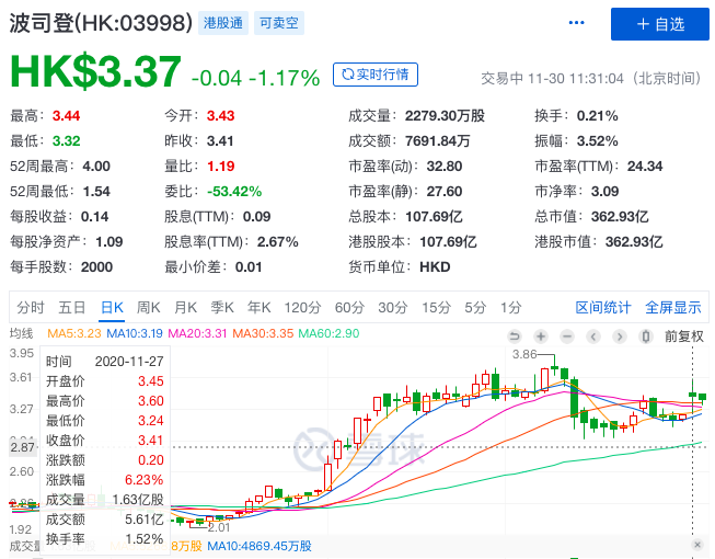 由於業績超預期,資本市場很快就給了积極反饋。事實上,從今年9月開始,波司登在資本市場的表現就已經有了明顯起勢。