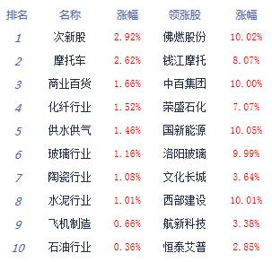 從盤面上看,燃氣、新零售、採掘服務、粵港澳、油改、次新股等概念板塊居漲幅榜前列;證券、在線旅遊、特鋼、白酒、保險、銀行等概念板塊居跌幅榜前列。