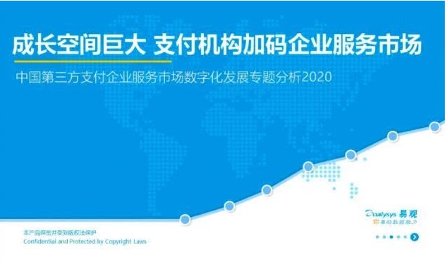 1月14日消息,周一,易觀(Analysys)發布《中國第三方支付企業服務市場数字化發展專題分析2020》指出,企業服務市場潛力巨大,支付服務是升級剛需。