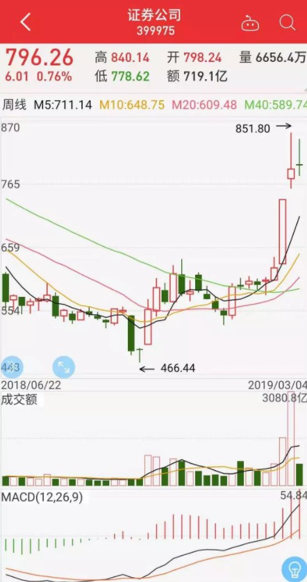 根據證券公司指數(399975)的走勢來看,該指數從去年10月19日見底以來,已經由當日的466.44點飆升到近日的851.80點,累計上漲了82.6%,相當於大盤漲幅的三倍。其中證券板塊的龍頭中信建投的漲幅更是高達307.7%,讓十幾萬股東賺得盆滿缽滿。