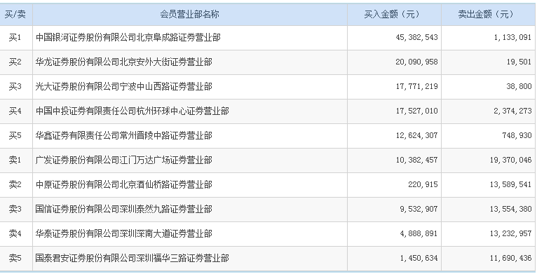 交易所盤后數據显示,今日買賣華大基因股份金額前五席位均屬券商營業部,其中,銀河證券北京阜成路證券營業部買入4538.25萬元,占今日成交金額的2.87%,買入金額最多;華龍證券北京安外大街證券營業部買入2009.10萬元。