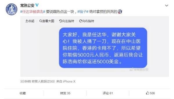 在一片關注聲中,有人居然藉此事蹭熱點。對此,常熟市公安局官方微博@常熟公安20日下午公布了一例帶有惡搞風格的“詐騙”短信。