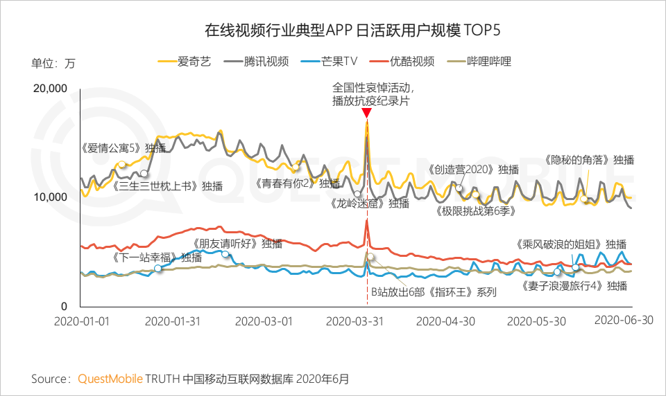 QuestMobile數據發布的《2020半年度中國移動互聯網實力價值榜》显示,6月愛奇藝APP月活為5.08億,騰訊視頻APP月活4.83億,而優酷APP月活僅為2.27億。愛奇藝Q3會員數達1.048億,騰訊視頻達1.2億,優酷尚未公布数字。有接近優酷的資深業內人士告訴深燃,2020年優酷日活最低一度跌至1400萬,甚至不及二線視頻平台。但一位優酷高管否定了這一說法,“承認第三的位置,但不可能跟其他平台差那麼多”。
