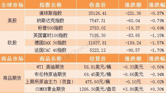 美東時間周三,歐美股市全線收跌,道指跌超200點,標普500指數失守2800點整數關口。美債收益率一度大跌,但7年期國債發行需求不佳,收益率“V”型大幅反彈。美股科技股集體下跌,芯片類股多數逆市上漲。加拿大鵝營收增速創八個季度來最低水平,股價跌超30%;美國人造肉公司Beyond Meat漲超13%,IPO以來累計上漲逾290%。中概股方面,蔚來跌近10%,此前美銀美林大幅下調該公司目標價;瑞幸咖啡逆勢漲超7%。市場避險情緒升溫,美元指數重返98關口,金價小幅收漲。