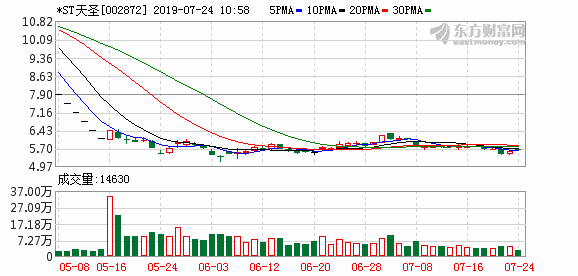 而隨着公司的市值不斷縮水,直接觸發了第一階段的穩定股價措施啟動條件。2018年11月8日,*ST天聖對外披露稱,截至2018年11月7日收盤,公司股票收盤價已連續20個交易日低於公司最近一期末經審計的除權除息后的每股凈資產9.7元。因此,公司控股股東應在公告增持意向後的6個月內,運用自有資金增持股份不少於當期公司股份總額的1%;公司董事、高級管理人員同控股股東一起進行股份增持,各自按照不低於上一年度從公司取得的稅後薪酬的20%的自有資金進行增持。