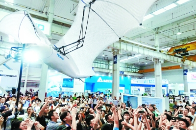 2018世界機器人大會今天在京開幕,北京機器人產業正不斷挑戰前沿顛覆性技術,向全球機器人創新高地邁進,並在本屆展會上一一亮出最新成果。展會上,仿生狐蝠吸引了眾多參觀者。本報記者 安旭東攝