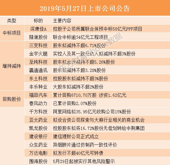 摘要 5月27日晚間,滬深兩市多家上市公司發布公告,以下是重要公告匯總。