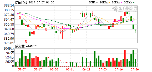 受波音公司第二季度巨額虧損和737MAX系列飛機或遭停產消息影響,24日美股開盤后不久,波音的股價便一路下跌,跌幅一度高達3%,不少機構亦同步降低了波音的評級。