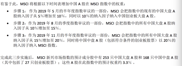 近日,MSCI中國研究主管魏震在接受第一財經記者獨家專訪時表示,在前瞻MSCI還會否持續擴大A股納入因子前,先要確保今年8月、11月剩餘的兩次擴大納入平穩過渡。在今年的“三步走”納入完成后,在投資者獲取积極市場體驗的基礎上,MSCI研究團隊將收集市場反饋並擇時就是否進一步納入A股展開全面諮詢,諮詢對象則是使用MSCI指數的客戶,包括所有資金擁有人、資產管理人、交易所、監管層等市場參与者,最終則由MSCI指數政策委員會來做出納入方案的決定。